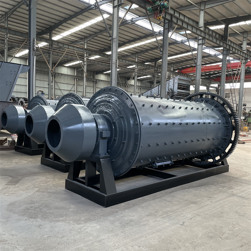 球磨機(jī)為臥式圓柱車削齒輪,外齒輪和兩個(gè)料斗驅(qū)動(dòng)的骨架式,物料由進(jìn)料設(shè)備經(jīng)空心軸螺旋后進(jìn)入一個(gè)料斗,有梯形護(hù)套或波紋護(hù)套,內(nèi)裝有鋼球,在筒體離心力作用下落下,研磨物料,在中粗磨后,通過(guò)單層隔板,物料進(jìn)入第二個(gè)料斗,內(nèi)有帶有鋼球的平面刻度板,用于研磨物料,粉料從柵板上排出,完成粉磨制砂。