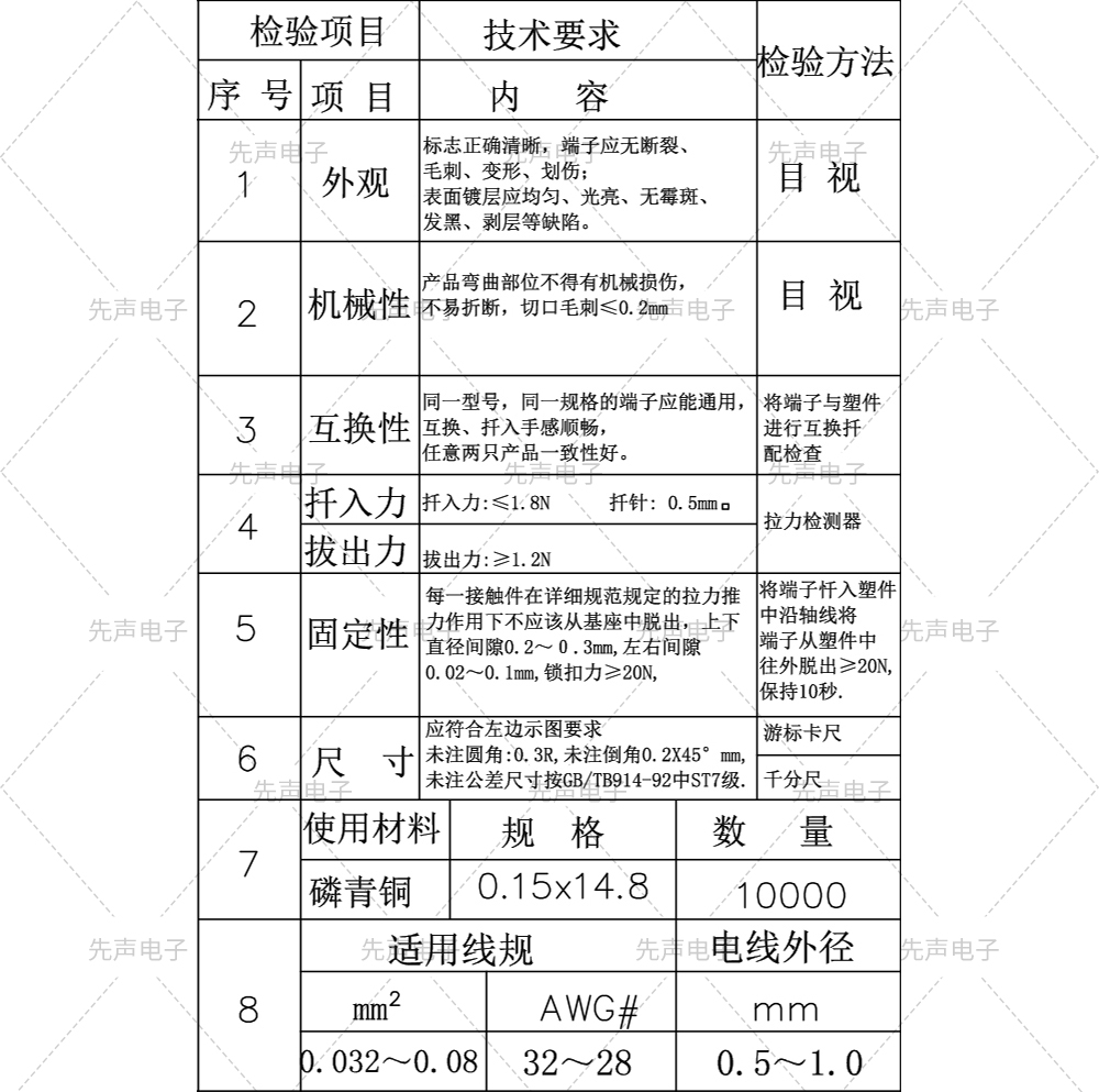 端子規(guī)格書