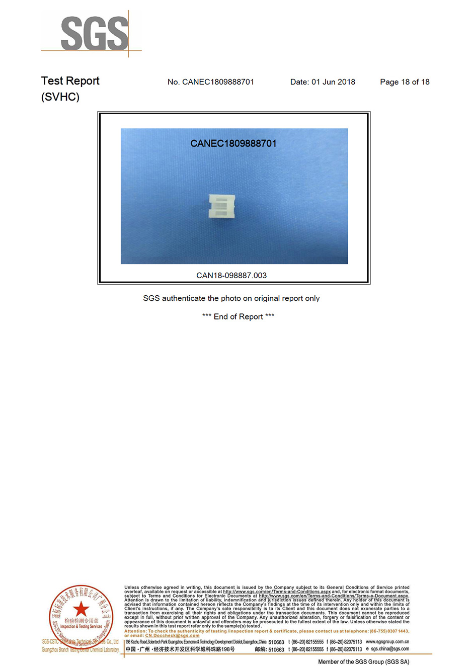 SGS環(huán)保認證報告