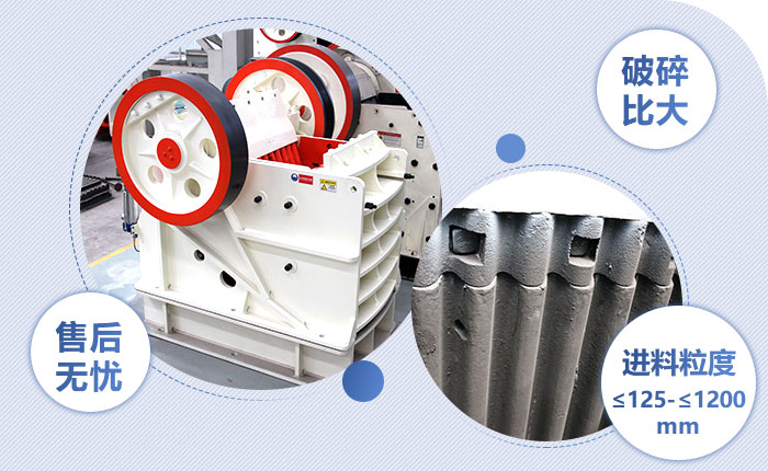 顎式破碎機按照活動顎板的擺動方式不同,可以分為簡單擺動式顎式破碎機(簡擺顎式破碎機)。復雜擺動式顎式破碎機(復擺顎式破碎機)和綜合擺動式顎式破碎機三種。顎式破碎機俗稱顎破,又名老虎口。由動顎和靜顎兩塊顎板組成破碎腔,模擬動物的兩顎運動而完成物料破碎作業(yè)的破碎機。廣泛運用于礦山冶煉、建材、公路、鐵路、水利和化工等行業(yè)中各種礦石與大塊物料的破碎。顎式破碎機在礦山、建材、基建等部門主要用作粗碎機和中碎機。按照進料口寬度大小來分為大、中、小型三種,進料口寬度大于600MM的為大型機器,進料口寬度在300-600MM的為中型機,進料口寬度小于300MM的為小型機。顎式破碎機結(jié)構(gòu)簡單,制造容易,工作可靠。